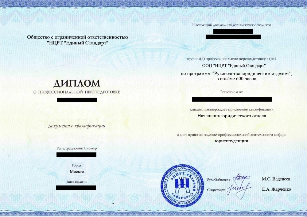 • Диплом о профессиональной переподготовке установленного образца. Срок действия: бессрочно